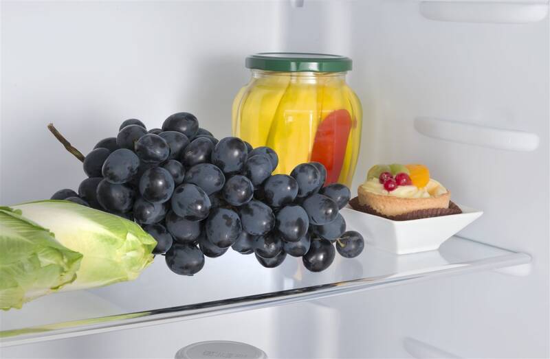 Chladicí části je věnován prostor s čistým objemem 181 l. Vnitřek je přehledně rozdělen 4 policemi z kvalitního pevného skla, z toho jsou 3 výškově nastavitelné. Příjemným benefitem je kompaktní držák na 2 láhve.