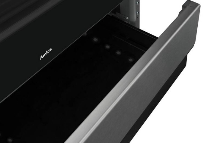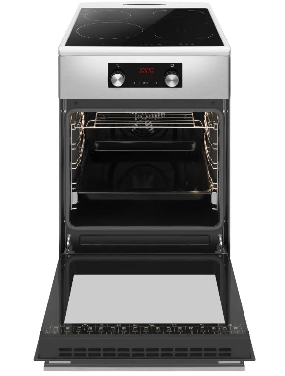 Volně stojící indukční sporák Amica SIS 512 TCX nabízí 4 varné zóny s celkovým výkonem 10,5 kW. Trouba s kapacitou 65 litrů je vybavena kruhovým topným tělesem a elektrickou multifunkční funkcí. Na výběr máte z 12 programů, včetně horkovzdušného pečení nebo grilu. Mezi oblíbené funkce patří rychlý předehřev, booster, ukazatel zbytkového tepla a parní pečení SoftSteam. Indukční deska je ovládána pomocí senzorového dotykového panelu.