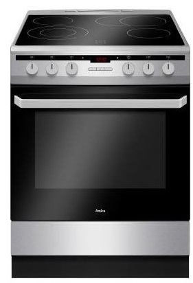 Sklokeramická varná deska, 4 zóny, Digitální displej / Typ programátoru Ta, Elektrická multifunkční trouba, 10 funkcí trouby vč. grilu a horkého vzduchu, Objem 65 l,Otočný rožeň, Hluboký pečicí plech 1x, Rošt 1x, Energetická třída A, rozměry v x š x h 85x60x60cm, Nerez