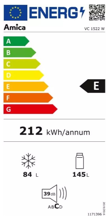 Volně stojící kombinovaná chladnička Amica VC 1522 W s celkovou kapacitou 229 litrů je ideálním pomocníkem do středně velkých domácností.
