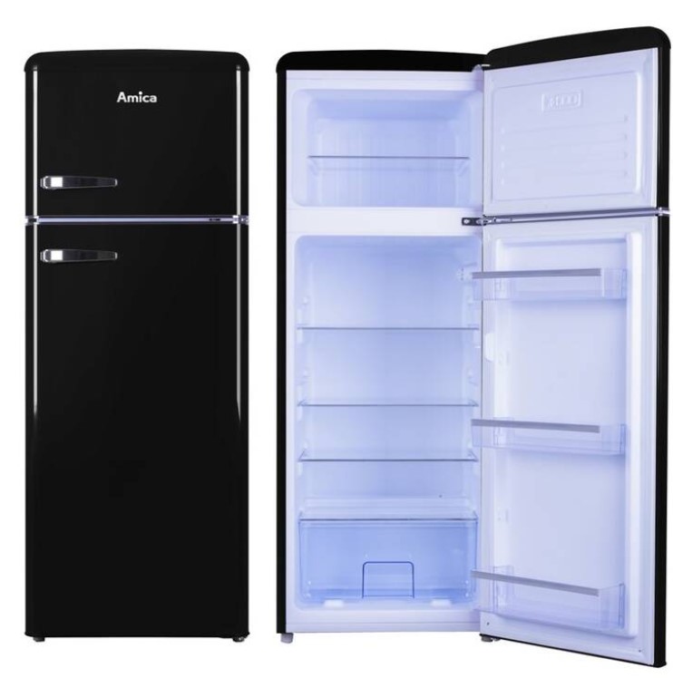 Kombinovaná chladnička Amica VD1442 AB vás na první pohled zaujme svým provedením. Netradiční modrou barvu v kombinaci s retro designem skvěle doplňují kontrastní chromovaná madla. Lednice je proto plnohodnotným interiérovým doplňkem.
