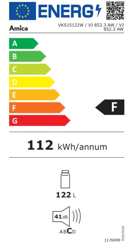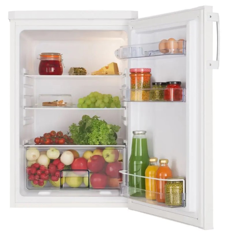 Monoklimatická chladnička, VxŠ: 84,5x55 cm, E, 120 l, 41 dB, mechanické ovládání termostatu, externí madlo, bílá