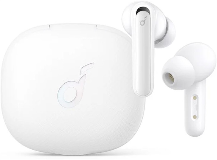 bezdrátová TWS sluchátka, ANC - aktivní potlačení hluku, Bluetooth 5.0, IPX5, výdrž baterie: case 35 hodin, 6 mikrofony, USB-C, Rychlonabíjení 10min/2h, Soundcore App, barva: bílá