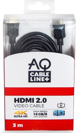 kabel HDMI 2.0, vhodný i pro 4K, High Speed + Ethernet, 18 Gbps, zlacené kontakty, několikanásobné stínění, balení krabička, délka 3 m