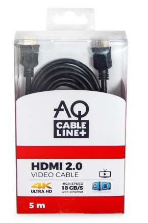 kabel HDMI 2.0, vhodný i pro 4K, High Speed + Ethernet, 18 Gbps, zlacené kontakty, několikanásobné stínění, balení krabička, délka 5 m