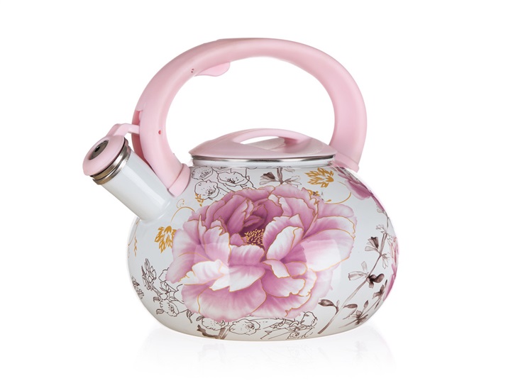 Konvice smalt MAGNOLIA 3 l; Smaltovaná konvice pískací 3 l MAGNOLIA je vyrobena z ocelového plátu s 2vrstvým smaltovaným nástřikem a dekorem ve stylu MAGNOLIA. Má plastové držadlo barevně laděné do designu konvice, snímatelnou píšťalu a dno opatřeno piktogramy o použití konvice.