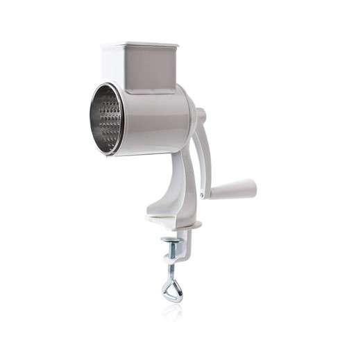 Mlýnek na strouhanku 30,5 cmMlýnek na strouhanku o celkové výšce 30,5 cm, buben z pocínovaného plechu s průměrem 7,5 cm, kovové tělo mlýnku je ošetřeno práškovou barvou v bílém odstínu. Vyrobené v České republice.