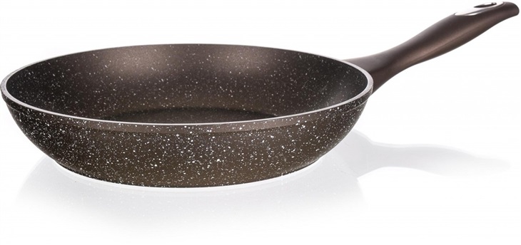 Pánev s nepřilnavým povrchem PREMIUM Dark Brown 28 x 5,3 cmHliníková litá kovaná pánev PREMIUM DARK BROWN s nepřilnavým povrchem, rozměr 28x5,3 cm, tm.hnědý granitový dekor, tloušťka stěny 3 mm, plně indukční dno, soft-touch rukojeť. Nepřilnavý povrch je velmi tvrdý a odolný proti poškrábání. Pánev