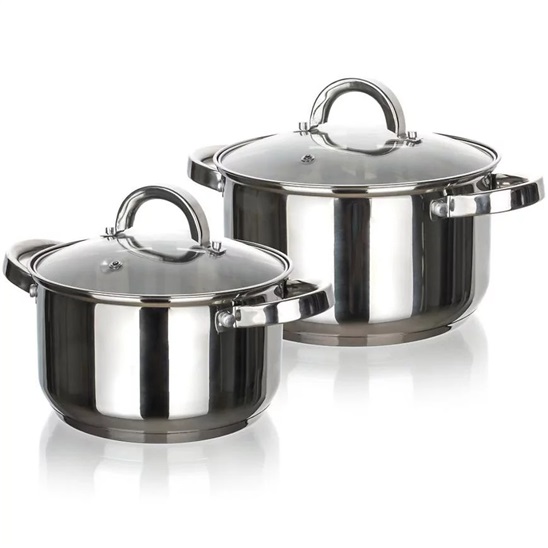 Sada nerezového nádobí SWING Big, 4 ksSada nerezového nádobí SWING 4 ks obsahuje: hrnec 18 x 11cm s poklicí, hrnec 22 x 13 cm s poklicí. Nádobí lze používat na všechny typy sporáků. Poklice jsou vyrobeny z odolného skla a mají otvor na páru pro dokonalou kontrolu nad vařením. Povrchová úprava nerezu lesk (uvnitř i vně). Nádobí se snadno udržuje, lze mýt v myčce. Držadla jsou k hrncům našroubovaná.