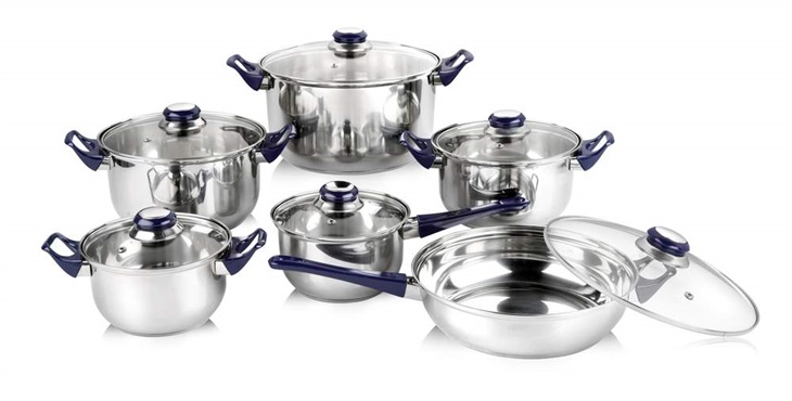 Sada nerezového nádobí CELESTE, 12 ks, barva čirá12dílná sada nerezového nádobí CELESTE obsahuje: rendlík 13,5 x 7 cm, hrnec 15 x 8 cm, hrnec 15 x 8 cm, hrnec 17 x 9,5 cm, hrnec 21 x 11,5 cm, pánev 21 x 6 cm. Hrnce, rendlík i pánev mají čiré skleněné poklice s plastovými úchyty. Hrnce lze použít na všechny typy varných desek mimo indukce (dno neobsahuje protektor pro indukční varné desky).