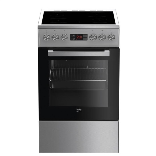 Beko FSM 57300 GX - elektrický sporák • energetická třída A • 4 varné zóny • objem trouby 55 l • 8 druhů ohřevu • sklokeramická varná deska • horkovzdušná trouba • otočné ovládání • displej • 85×50×60 cm