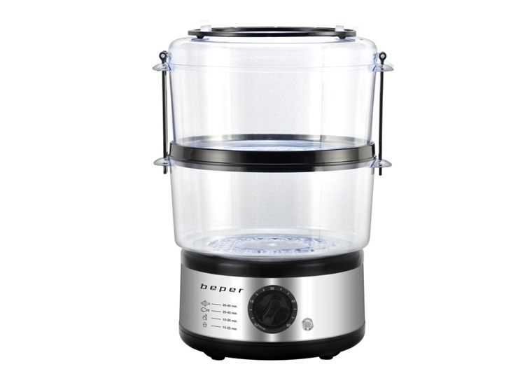 objem 5 l, indikátor hladiny vody, 2 nádoby, provozní světlo a tlačítko, časovač až 60 min, automatické vypnutí, zajišťovací háčky, snadné čištění, vhodné do myčky
