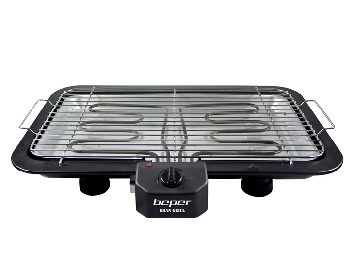 grilovací plocha 51 x 30 cm, ocelové topné články, 2 grilovací rošty s držadly, nastavitelná výška roštu ve dvou polohách, nastavitelný termostat, výkon 2200 W