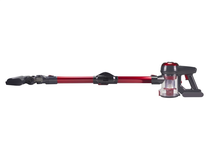 doba provozu 35 min, 2 volitelné rychlosti, motorický kartáč s tvrdými štětinami a LED světly, štěrbinová hubice, kartáčová hubice, skládací hadice, základna pro připevnění na zeď, Li-Ion baterie 22,2 V, 120 W