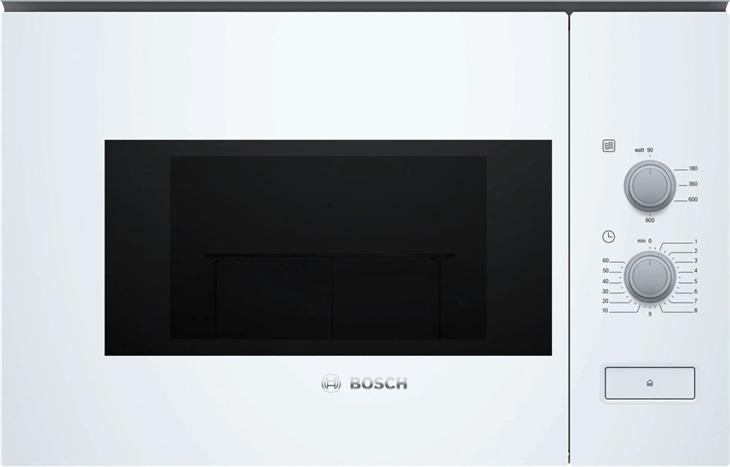 vestavná mikrovlnná trouba, výkon max. 800W, 5 stupňů výkonu, hydrolytické čištění Cleaning Assistance objem 20l, otočný talíř 25,5 cm, závěs dveří vlevo, bílá