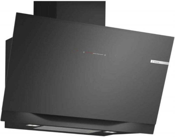 komínový odsavač par, 90 cm, A+, nakloněný desing - černé sklo, EcoSilence Drive, AutoControl, PerfectAir Sensor, max.normální stupeň 753m3/hod, intenzivní 1007m3/hod, LED osvětlení, ovládání DirectSelect, hlučnost při normálním stupni min./max.: 65/70 dB