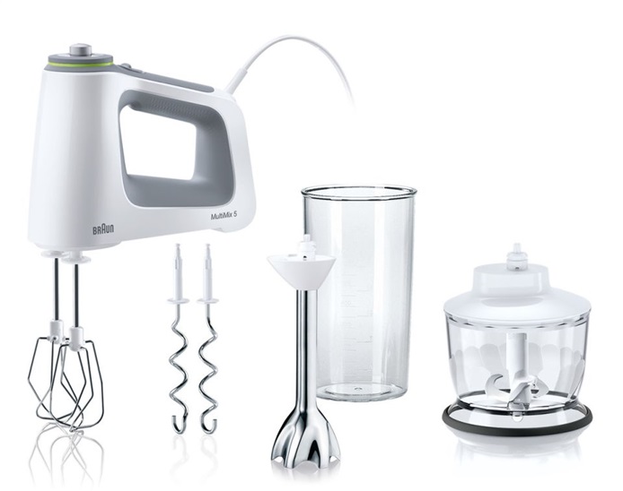 Braun MultiMix 5 HM5137.WH - ruční šlehač • příkon 750 W • 9 rychlostních stupňů • vhodný pro šlehání, hnětení, mixování, sekání • TURBO tlačítko • technologie VarioControl • technologie SmartMix • systém EasyClick • systém ComfortClick • nástavce lze mýt v myčce nádobí • ergonomicky tvarovaná rukojeť SoftGrip • 1,55m přívodní kabel • příslušenství – 2 nerezové metly, 2 hnětací háky, mixovací nástavec a 600ml mixovací nádoba, sekací nástavec a 500ml nádoba