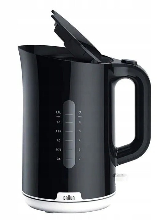 Braun Breakfast 1 WK1100.BK - rychlovarná konvice • objem 1,7 l • příkon 2200 W • systém RapidBoil • automatické vypínání v případě dosažení bodu varu • čyřnásobný bezpečnostní systém • omyvatelný filtr • otevírání tlačítkem v rukojeti • prostor pro uložení kabelu
