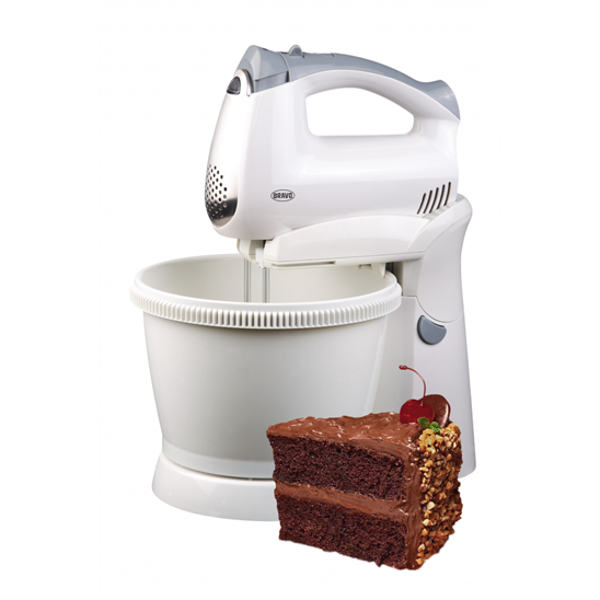 5 rychlostní stupňů, otočná mísa o objemu 1,5 l, TURBO tlačítko, kryt mísy s doplňovacím otvorem, nerezové šlehací a hnětací metly, příkon 400W