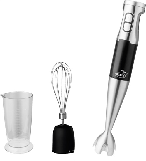 elegantní nerezový design; snadné ovládání; funkce Turbo; regulace rychlostí; odnímatelný nerezový ponorný mixér pro snadné čištění; šlehací metla; nádoba 700 ml; příkon 1000 W