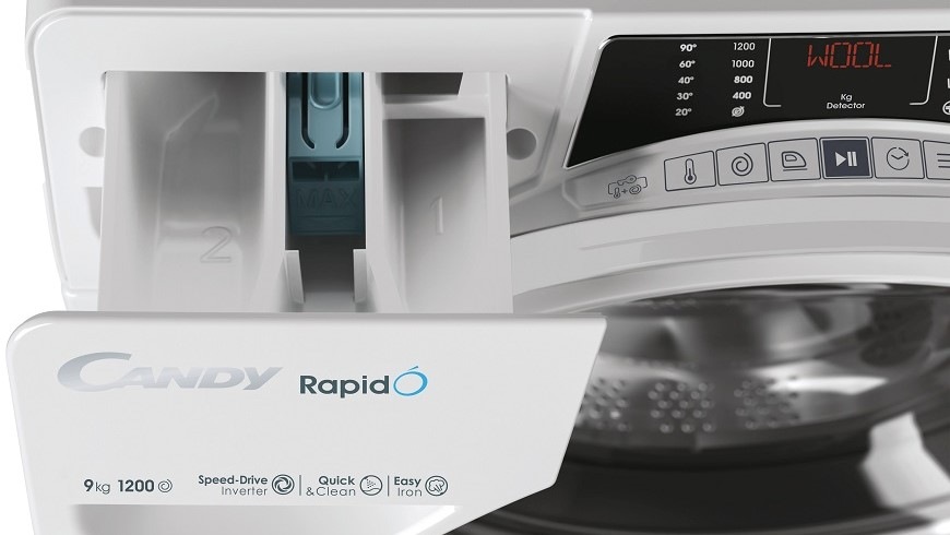 S technologií parní funkce Easy Iron představuje pračka Candy RapidÓ revoluční způsob péče o vaše prádlo. Snadné žehlení se stává realitou díky speciálnímu ošetření, které uvolňuje záhyby a minimalizuje nároky na žehlení. Vlákna jsou regenerována, osvěžena a nepříjemné zápachy jsou eliminovány. Každý program je optimalizován pro specifické ošetření párou, zajistí maximální účinnost čištění podle typů látky a barvy. S RapidÓ se vám život stává jednodušším a vaše prádlo vypadá vždy dokonale. Na výběr jsou tři úrovně: Bavlna, Syntetika, Jemné.