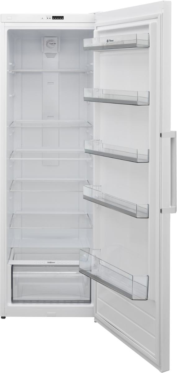 Jednodveřová monoklimatická chladnička; bílé barevné provedení; rozvod chlazeného vzduch do políc Cold Air Flow; madlo s integrovaným otevíracím mechanismem; celkový objem: 396 l; 5 nastavitelných + 1 pevná police z bezpečnostního skla; 1 zásuvka na ovoce a zeleninu; 4 standardní závěsné přihrádky ve dveřích; 1 velká závěsná přihrádka ve dveřích; zásobník na vajíčka; LED osvětlení; automatické odmrazování; elektronické řízení teploty; režim super chlazení; zadní kolečka pro snadnou manipulaci; en. třída E; klimatická třída SN-T; hlučnost 40 dB; roční spotřeba energie 122 kWh; hlučnost: 40 dB(A); rozměry (V x Š x H): 186 x 59,5 x 65 cm.