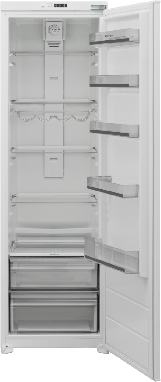 Vestavná jednodveřová monoklimatická chladnička; nová en. třída E; celkový užitný objem 294 l; elektronické ovládání s LED ukazateli; elektronický termostat; možnost změny směru otevírání dveří; automatické odmrazování; vnitřní LED osvětlení; 4 nastavitelné + 1 pevná police z bezpečnostního skla; 2 x zásuvka na ovoce a zeleninu; chromovaný držák na lahve; 1 hluboká přihrádka ve dveřích; 4 přihrádky ve dveřích na drobné potraviny, držák na vajíčka; lišty pro vestavbu; klimatická třída: ST/SN; spotřeba el. energie: 112 kWh/rok; hlučnost 39 dB(A); rozměry (V x Š x H): 177 x 54 x 54,5 cm;