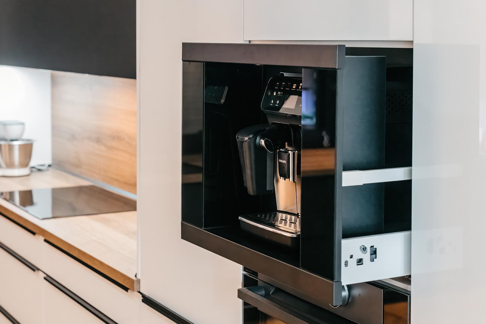Vestavná schránka pro kávovary CoffeeCase představuje ideální řešení pro milovníky kávy, kteří chtějí zachovat svůj oblíbený volně stojící kávovar, ale zároveň touží po vestavném vzhledu, který dokonale ladí s moderní kuchyní.
