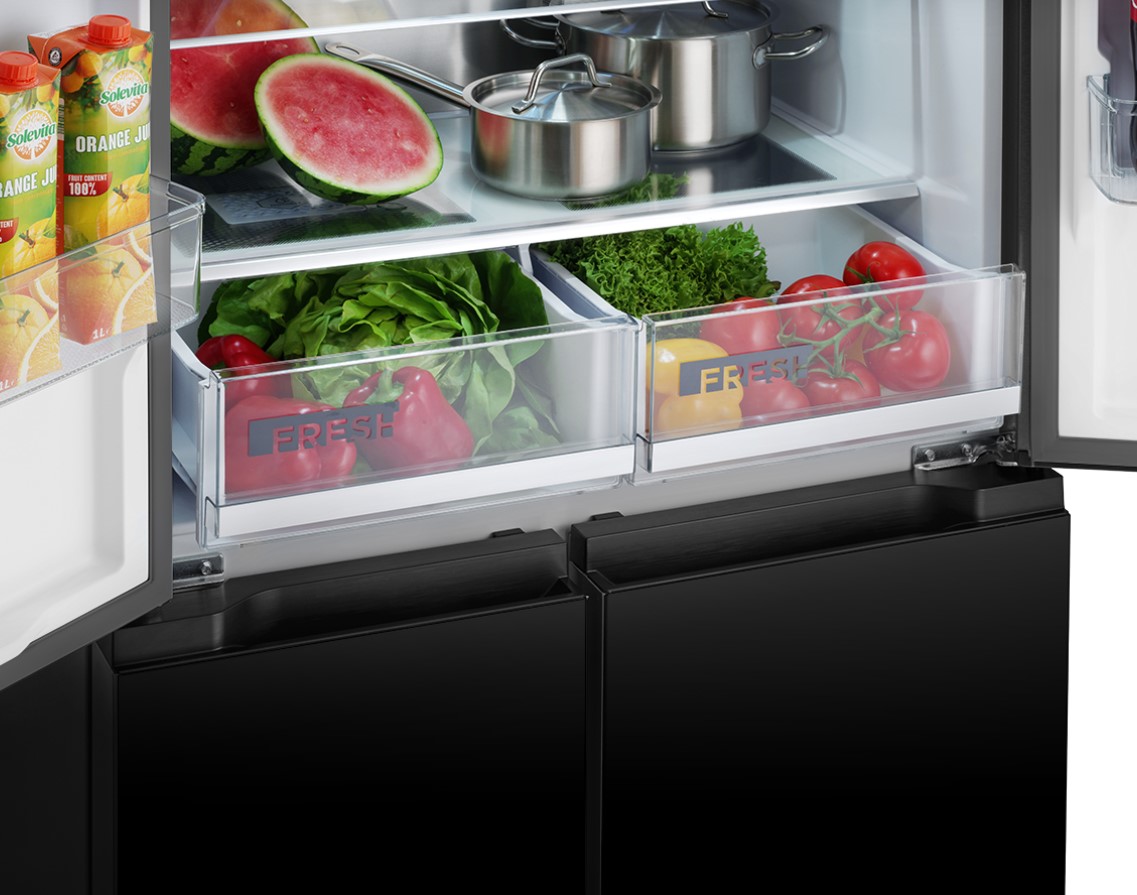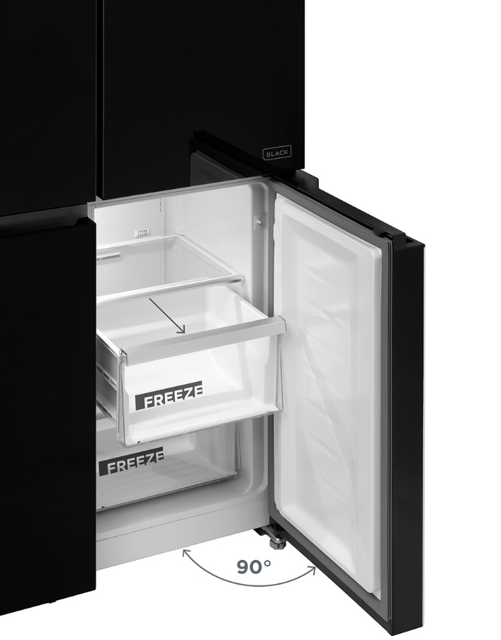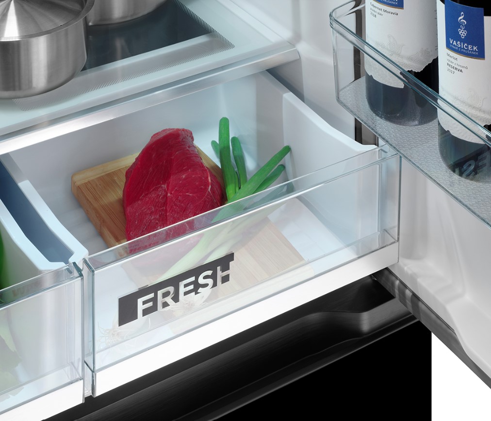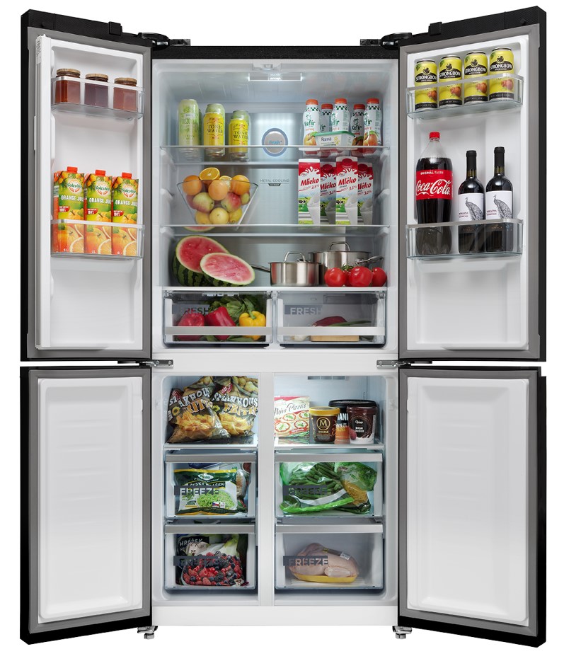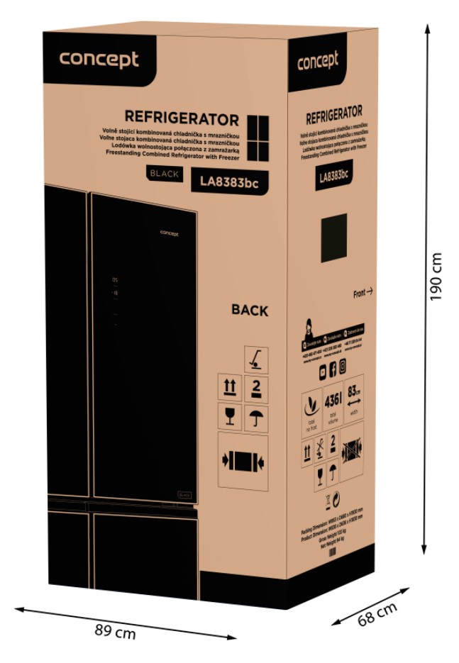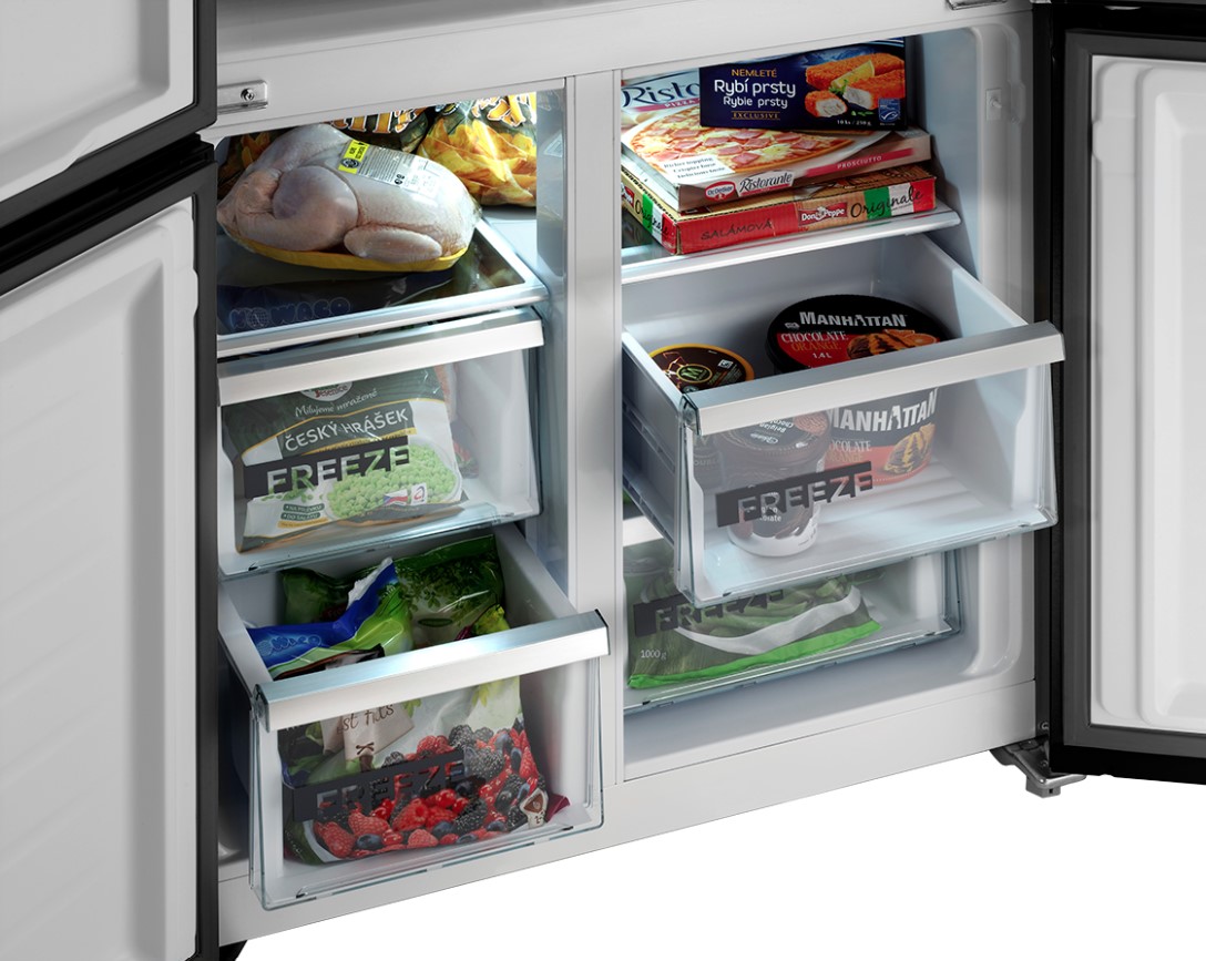 Energetická třída E; Designová linie Black; Typ Americká; Umístění volně stojící; Umístění mrazáku mrazák dole; Celkový objem 436 l; Objem lednice 288 l; Objem mrazáku 148 l; Roční spotřeba energie 280 kWh; Displej; Automatické odmrazování; Hlučnost 41 dB; Klimatická třída SN/T