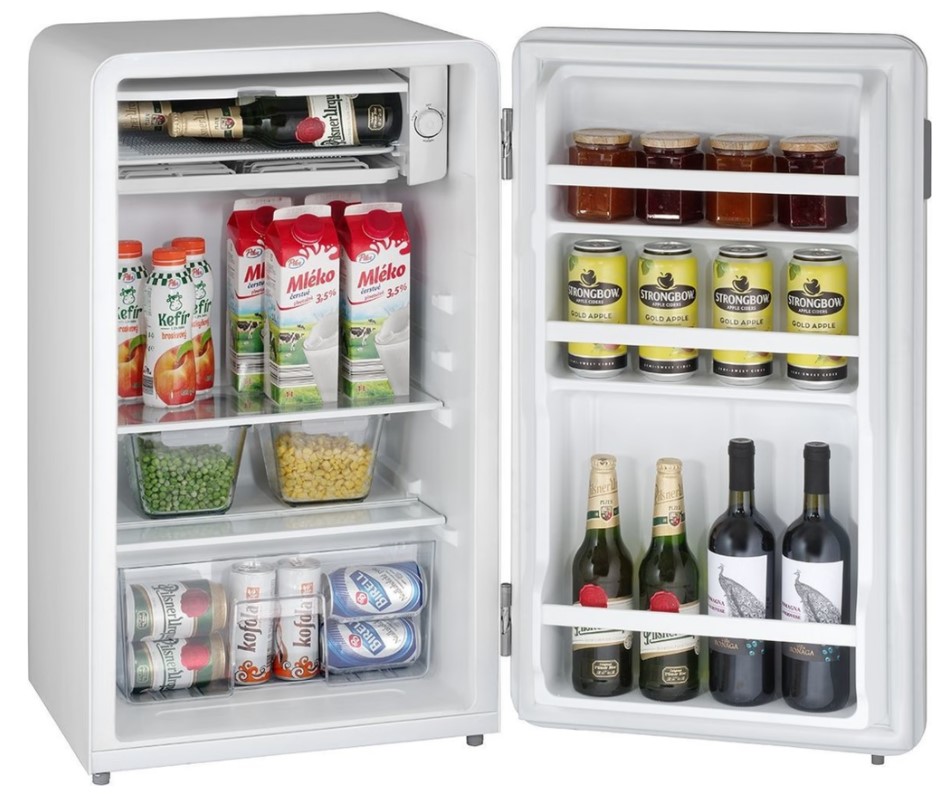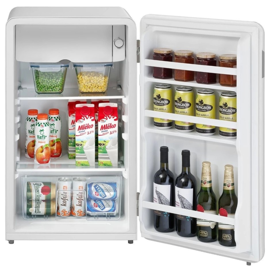 Energetická třída: F; Nulová zóna: Ne; Typ: Jedno-dveřová; Umístění: Volně stojící; Mrazák: Bez mrazáku; Celkový objem: 93 litrů; Objem chladničky: 93 litrů; Objem mrazáku: 0 litrů; Variabilní zóna: Ne; Roční spotřeba energie: 107 kWh; Displej: Ne; Automatické odmrazování: Ne; Hlučnost: 41 dB; Klimatická třída: SN/N/ST/T