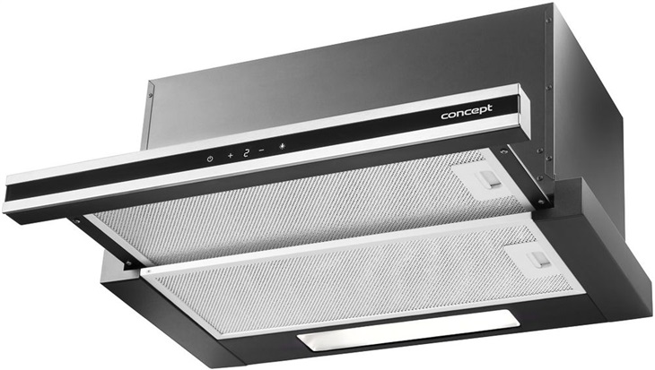 Vestavný výsuvný odsavač par Concept OPV3860 je součástí designové linie Sinfonia a vyniká výkonem 517 m3/h. Nabízí 3 stupně odtahu, možnost recirkulace, dotykové ovládání a úsporné LED osvětlení.