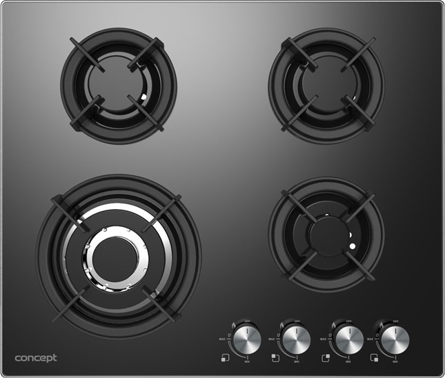 Šířka: 60 cm; Výška: 12 cm; Hloubka: 51 cm; Designová linie: Black; Barva: Černá; Připojení: 230 V; Počet plotýnek: 4; Hmotnost: 13,5 kg; Materiál desky: Speciální tvrzené sklo; Elektronické zapalování hořáků: Ano; Hořák WOK: Ano; Litinové mřížky: Ano; Připojení na propan/butan: Ano; Pojistky proti úniku plynu: Ano; Trysky na PB: 4 ks