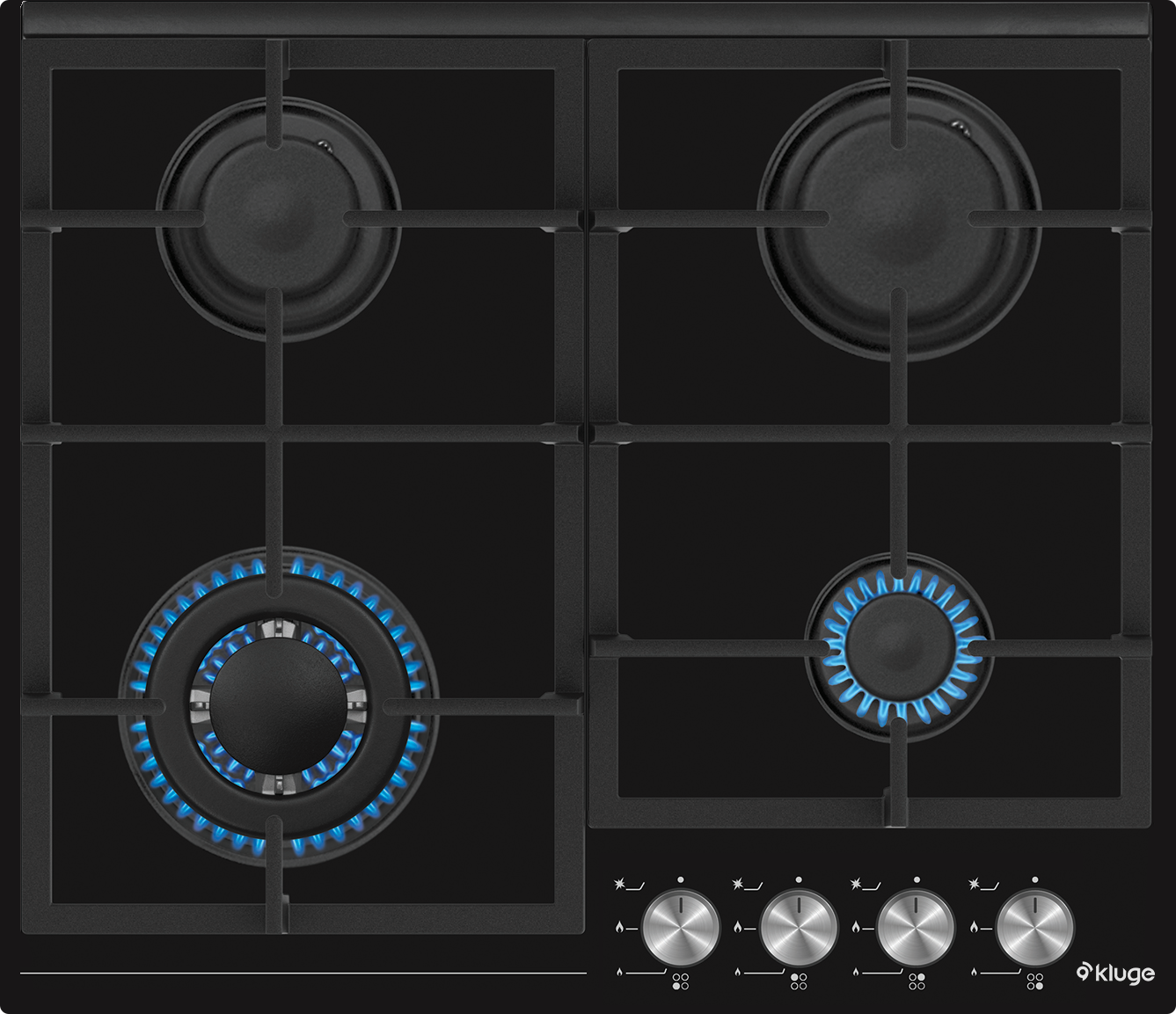 Varná deska Kluge KPG6010BG je vybavena automatickým zapalováním hořáků v ovládacích knoflících, které značně usnadňuje její používání. Díky funkci Gas Stop je zajištěna vysoká úroveň bezpečnosti, protože v případě náhodného zhasnutí plamene dojde k automatickému odpojení plynu.