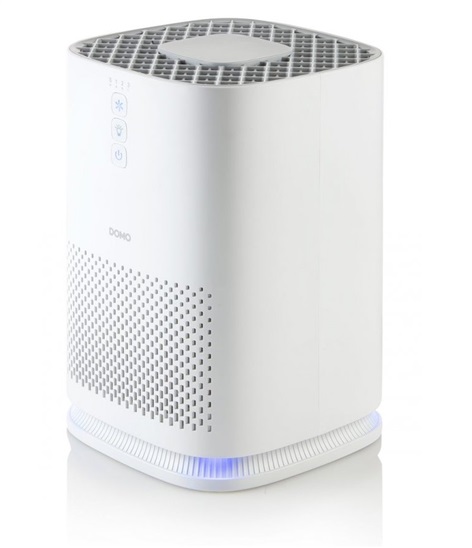 DOMO DO264AP - čistička vzduchu • dvojitý filtrační systém (filtr s aktivním uhlím, HEPA filtr) • aktivní ionizace vzduchu • výkon 120 m3/hod • maximální hlučnost 61 dB • LED osvětlení • 3 rychlostní stupně • režim Spánek • pro místnost do 20 m2 (50 m3) • dotykové ovládání
