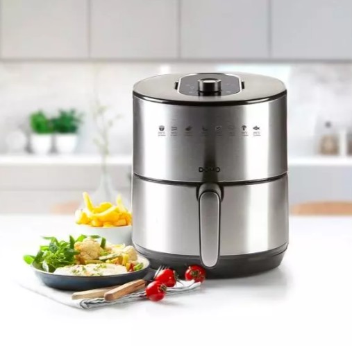 Digitální horkovzdušná fritéza DOMO DO530FR by rozhodně neměla chybět v žádné domácnosti. Spotřebič v nerezovém provedení se hodí nejen pro fritování hranolek bez oleje, ale také grilování masa, pečení chleba nebo třeba rozmrazování jídel. Fritovací koš nabízí kapacitu až 4 l a vejde se do něj až 1,2 kg potravin.