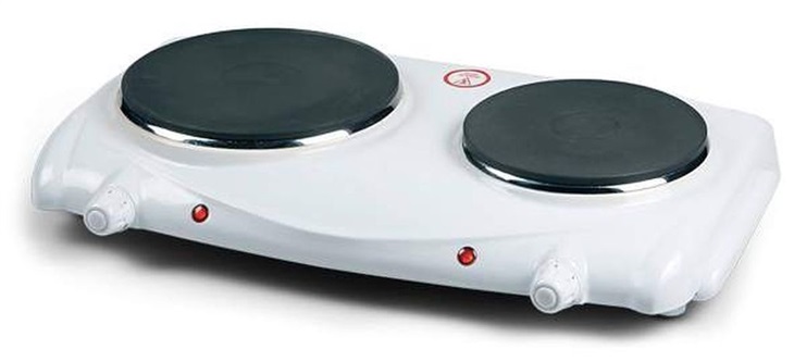 dvouplotýnkový, snadná a plynulá regulace teploty, světelná signalizace chodu, ochrana proti přehřátí, litinové plotny o průměru 18,5 cm a 15,5 cm, příkon 2500 W