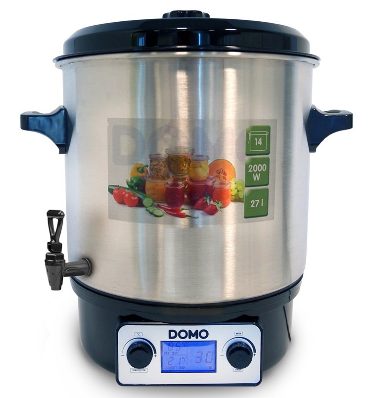 DOMO DO42325PC - plně automatický s LCD displejem, objem 27 litrů (cca 14 - 18 sklenic), minimální množství vody cca 1 litr, přehledný podsvícený LCD displej, plynulé nastavení teploty od 30 C do 100 C, časovač 1 až 120 minut, nebo nepřetržitý chod, příkon 2000 W