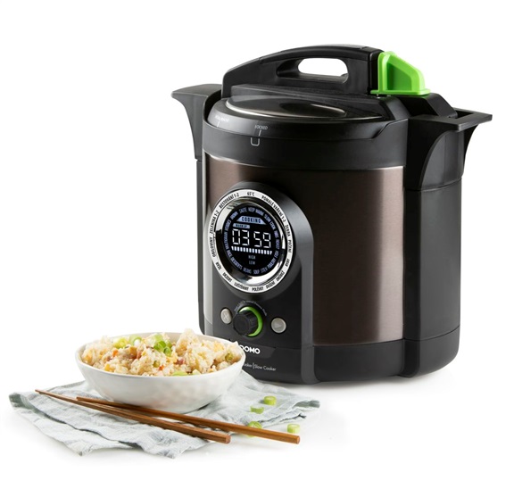 Multifunkční tlakový hrnec s nerezovou nádobou 6 l. Funkce pomalého a tlakového vaření, vaření v páře nebo restování. V balení navíc skleněná poklice na nádobu.