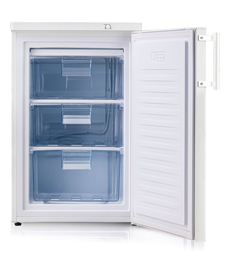 Šuplíkový mrazák v energetické třídě B se spotřebou 83 kWh/rok. Praktická výška 85 cm. Celkový objem 80 l rozdělený do 3 průhledných šuplíků. Tichý provoz 38 dB. Barva bílá.