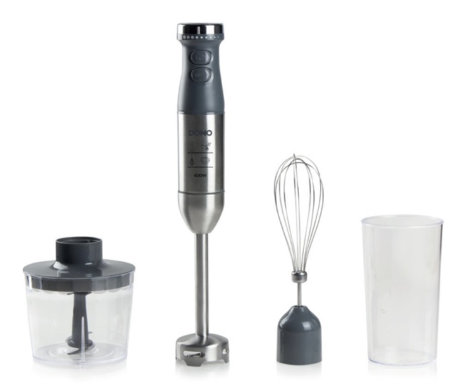 Nového člena domácnosti ale nemusíte nutně použít jen během mixování. V balení naleznete také nerezovou šlehací metlu, 700ml plastovou nádobu s boční ryskou a praktický sekáček. Veškeré ovládací prvky se nachází na těle přístroje. Tyčový mixér DOMO DO9226M spustíte stisknutím tlačítka a s pomocí otočného ovladače následně nastavíte optimální rychlost. K dispozici máte také pulzní funkci, která zahájí provoz na maximální možný výkon. Přívodní kabel je dlouhý 89 cm. Při používání se tak nemusíte nutně zdržovat jen v těsné blízkosti zásuvky. |