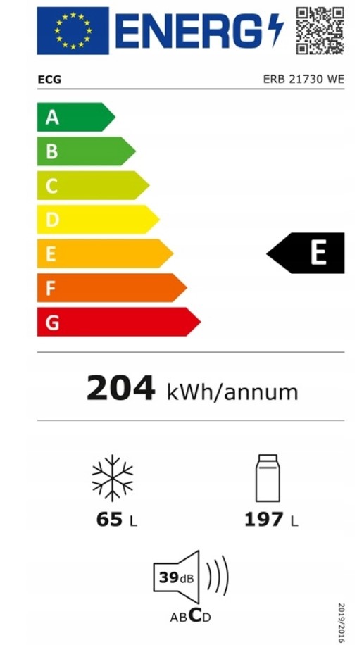 Chladnička je zařazena do energetické třídy E a její spotřeba je 204 kWh za rok.