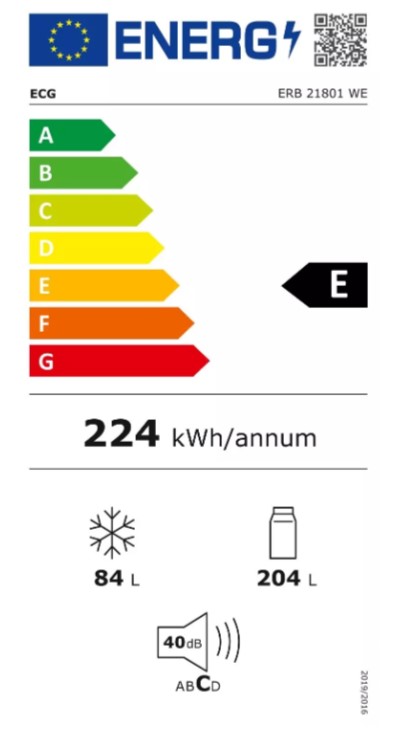 Maximální hlučnost lednice ECG ERB 21801 WE nepřekročí hodnotu 40 dB. V případě nenadálého výpadku proudu nebo poruchy budou v lednici potraviny bezpečně uchovány po dobu 17 hodin.
