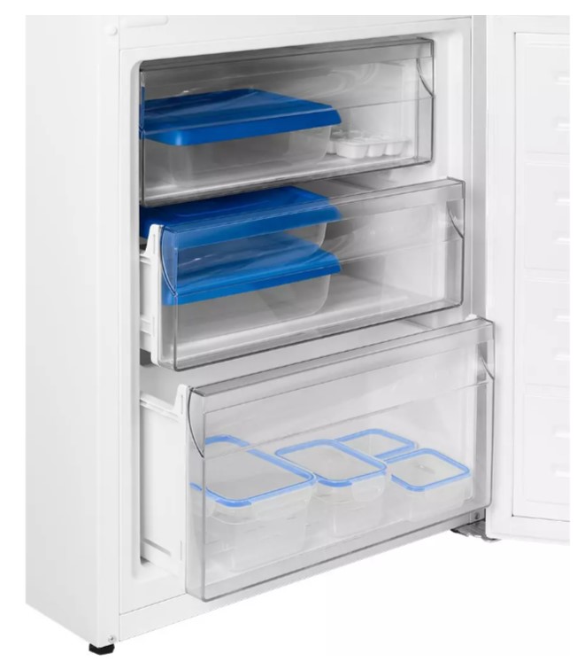 Chladnička se pyšní objemem 202 litrů a zároveň také disponuje automatickým odmrazováním. Chladicí část lednice je rozdělena pomocí čtveřice odolných polic z temperovaného skla. Díky zabudovaným drážkám můžete police jednoduše posunout a zvládnete uskladnit i větších hrnce. Ve spodní části je umístěna plastová zásuvka, která je primárně určena pro skladování ovoce a zeleniny.