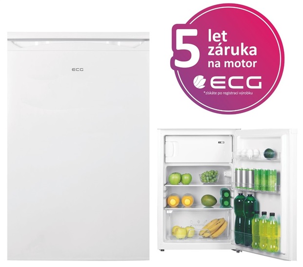 ECG ERT 108531 WE - lednice s mrazicí přihrádkou • energetická třída E • objem chladničky 97 litrů • objem mrazicí přihrádky 16 l • hlučnost 39 dB • klimatická třída N/ST • mrazicí výkon 2 kg/24 h • LED osvětlení • manuální odmrazování • akumulační doba 9 hodin • průhledná zásuvka na ovoce a zeleninu • 2 skleněné police • možnost změny směru otevírání dveří • 84,5×55,3×57,4 cm