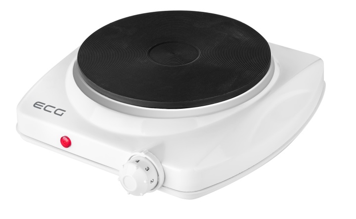 ECG EV 1512 White elektrický vařič • elektrická plotýnka • 1 varná zóna o průměru 18,5 cm • výkon 1500 W • připojení k síti 220–240 V • 5 stupňů výkonu • snadné čištění • ukazatel zapnutí • otočné ovládání • ochrana proti přehřátí • kompaktní rozměry