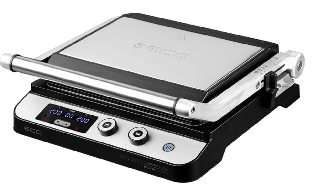 Společnost ECG představuje vysoce výkonný a multifunkční kontaktní gril KG 1000 Gourmet. Příprava šťavnatých steaků, zeleniny, tortill či panini je s tímto modelem hračka a jeho využití tím z daleka nekončí. Díky němu si totiž můžete pochutnat také na vaječných omeletách. Kontaktní gril ECG ocení i velmi nároční uživatelé. Moderní nerezový design skvěle zapadne do každého interiéru. Celkový vzhled doplňuje intuitivní elektronické ovládání. Součástí ovládacího panelu je také praktický LED displej zobrazující aktuální nastavení včetně času a teploty obou pracovních desek. |