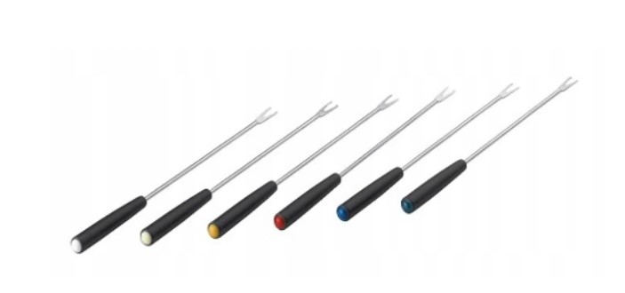 Sada 6 vidliček na Fondue Fondue je pokrm připravovaný s horkým sýrem a bílým vínem. Připravuje se také masové fondue, ve kterém je sýrová hmota nahrazena horkým olejem, a chléb na vidličkách - s hovězím masem. Připravit si můžete i lahodné čokoládové fondue.