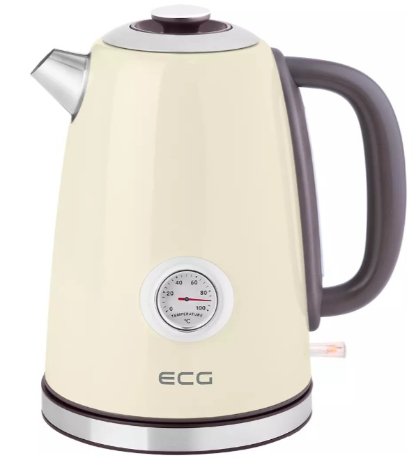ECG RK 1700 Magnifica Intenso - rychlovarná konvice • nerezový povrch • objem 1,7 l • příkon max. 2200 W • automatické vypínání v případě dosažení bodu varu • dvojnásobný bezpečnostní systém • skryté topné těleso • 360° otočná základna s navíjením kabelu • vyjímatelný a omyvatelný filtr • teploměr • středový konektor • ukazatel vodní hladiny • světelná signalizace provozu • otevírání víka pomocí tlačítka • tepelně izolovaná rukojeť • 24,4 × 21,1 × 15,8 cm