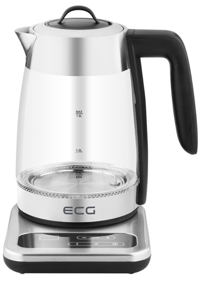 ECG RK 1891 INFUSO - rychlovarná konvice • povrch z kombinace nerezu a borosilikátového skla • objem 1,8 l • příkon 1850–2200 W • automatické vypínání v případě dosažení bodu varu • pojistka proti přehřátí • skryté topné těleso • 360° otočná základna s LED osvětlením • vyjímatelné sítko • 7 režimů nastavení teploty (40–100 °C) • funkce dechlorace • funkce udržování teploty vody • základna s ovládacím panelem • vyjímatelný a omyvatelný filtr • 70cm přívodní kabel • ergonomická rukojeť • hmotnost 1,4 kg