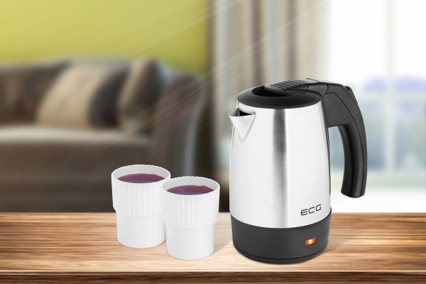 ECG RK 550 Travel - Objem 0,5 l, kovové tělo, skryté topné těleso, automatické vypnutí, zabudovaný přívodní kabel, světelná signalizace provozu, součástí 2 plastové šálky, 230V, príkon 1000 W